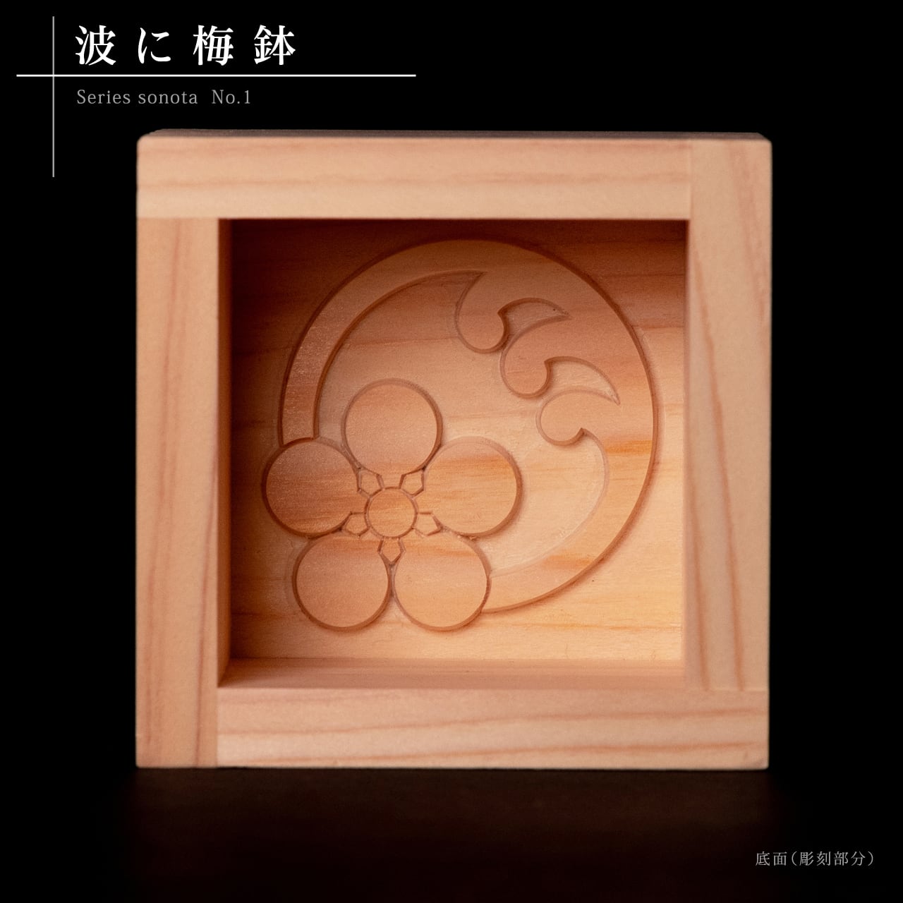 枡底面に季節感のある彫刻や、木彫前田工房の